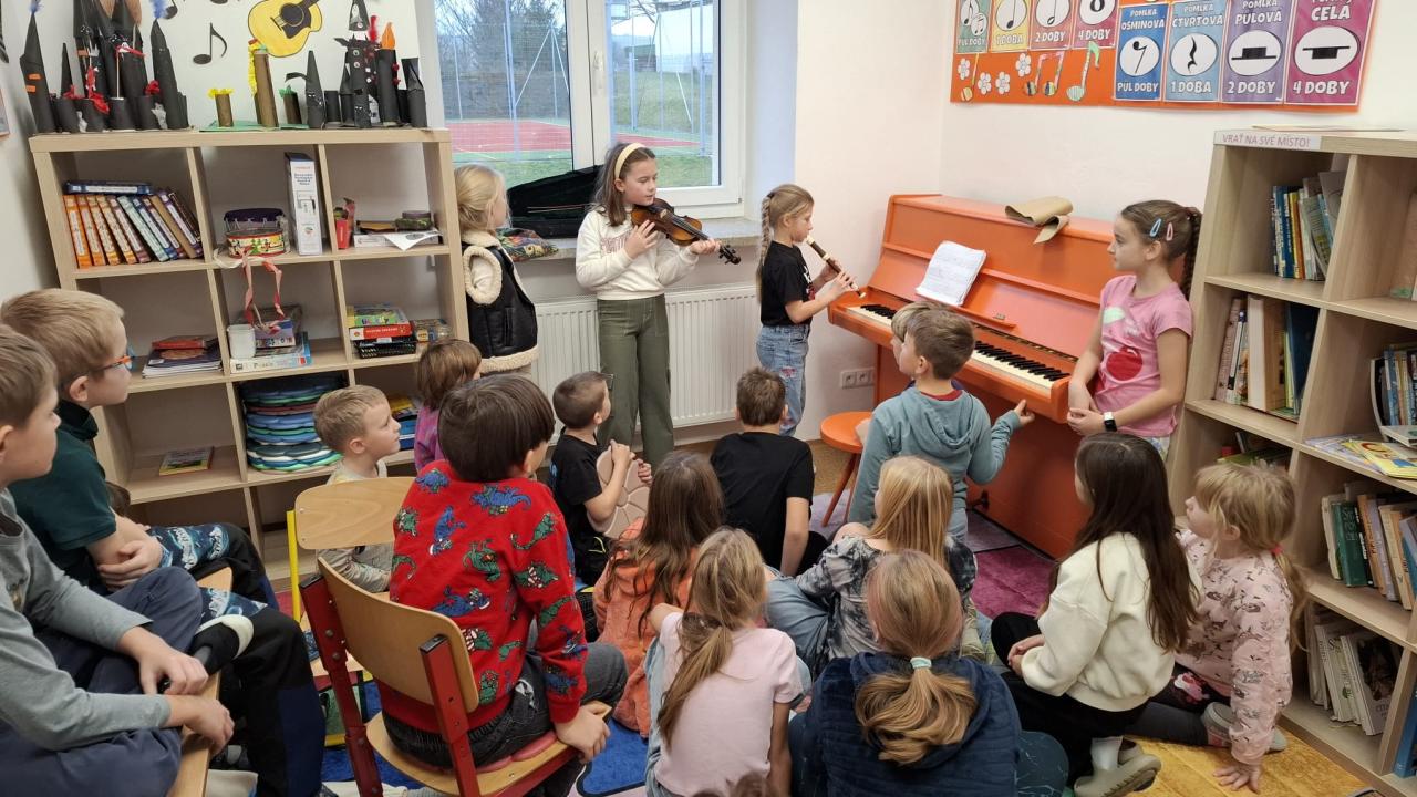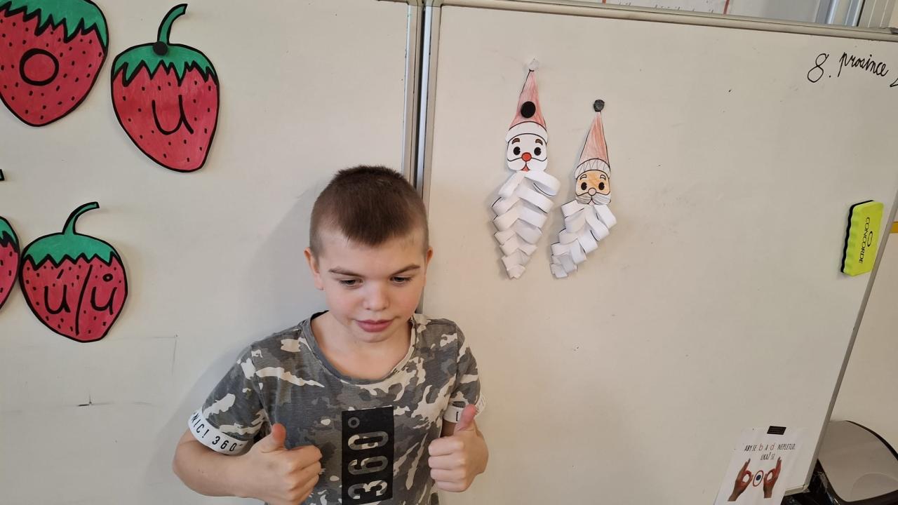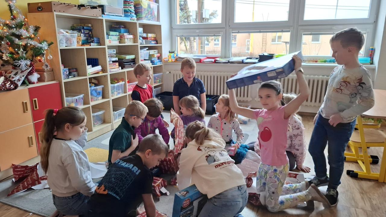 Celý měsíc jsme byli naladěni na sváteční atmosféru, tvořili vánoční přání, zpívali koledy, hráli si. V posledním předvánočním týdnu jsme společně s dětmi MŠ a ŠD roznesli vánoční přání do všech domů v obci. V úterý nás navštívil Ježíšek, děti měly z dárečků radost.